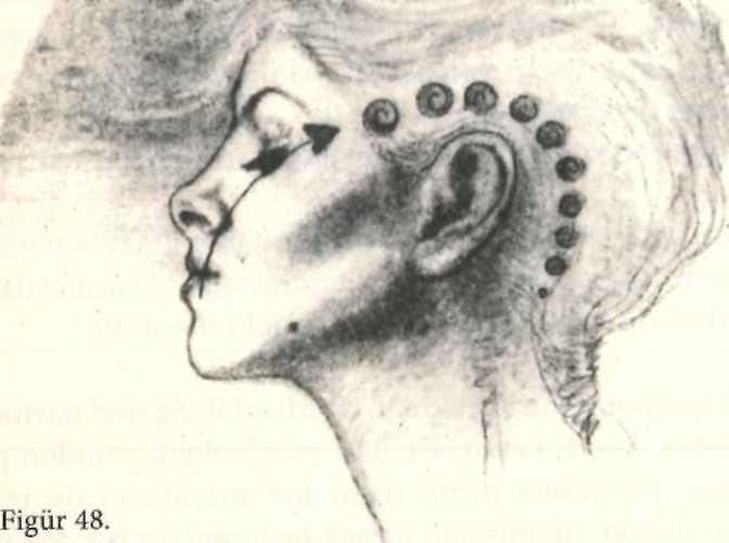 1. Şakalarınızdan başlayarak, başınızın sol tarafına önden arkaya doğru sol elinizin üç orta parmağıyla vurun (Figür 48). Vururken, ifadenizin negatif versiyonunu ritmik olarak belirtin. Sıkı bir temas hissetmek için biraz sert vurun. Önden arkaya doğru yaklaşık beş dakika vurun. Her vuruşta ifadenizi tekrarlayın.